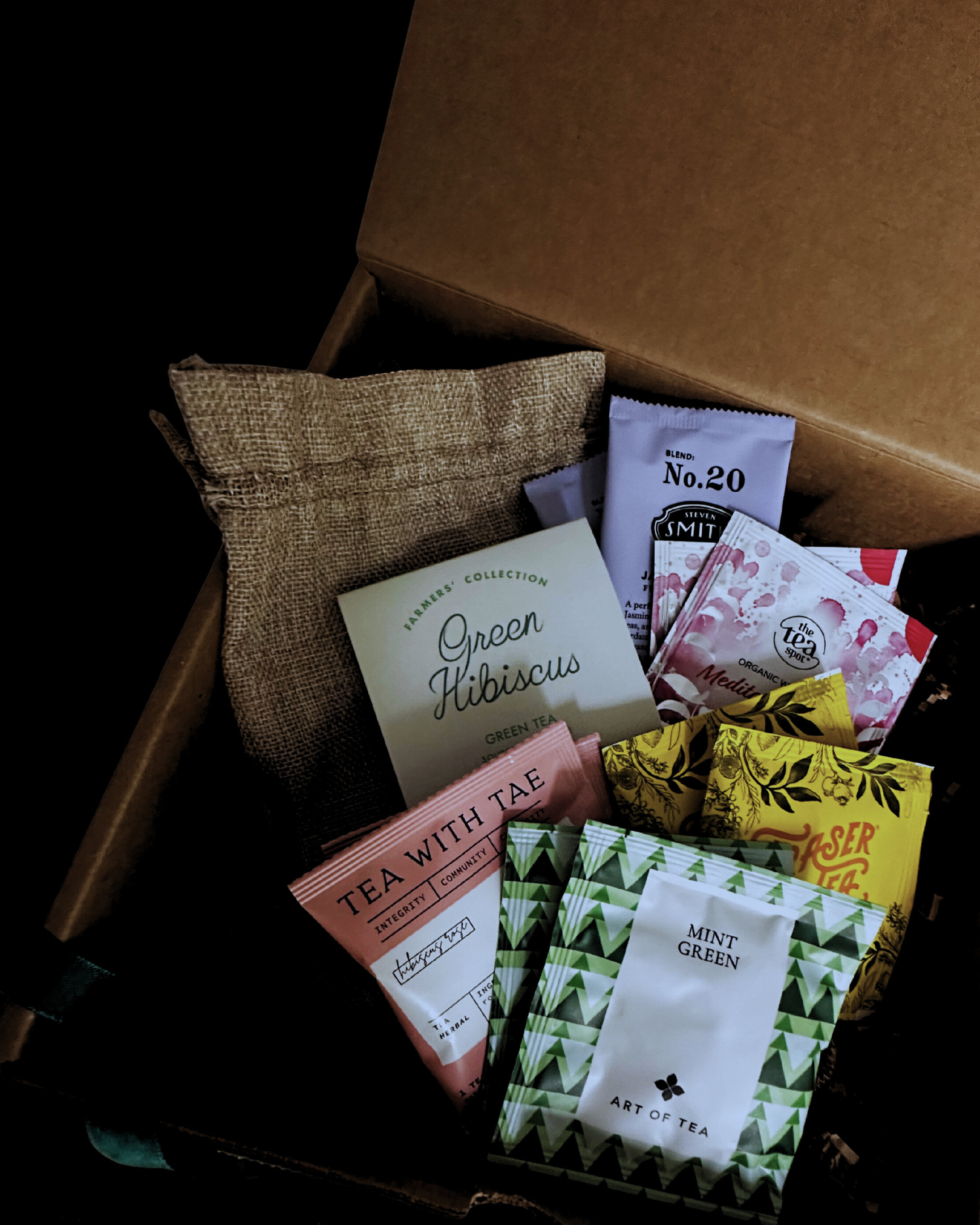 This photo doesn’t show the teas in this month’s box. Each month features a new lineup of premium blends. +Flat $4.99 shipping per box anywhere in the continental U.S.